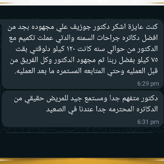 بخبرة تفوق 15 عام أجري خلالها العديد من جراحات السمنة و التجميل و جراحات الشرج